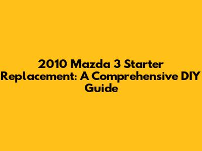 Hey there, car enthusiasts! So, your 2010 Mazda 3 is giving you some trouble starting up, huh? One of the usual suspects for this issue is the starter motor. Don't sweat it, though! Replacing the starter on your Mazda 3 is totally doable as a DIY project, and I'm here to walk you through it. This guide is designed to make the 2010 Mazda 3 starter replacement process as smooth as possible, saving you some serious cash and giving you that awesome feeling of accomplishment. Let's get right into it, shall we?