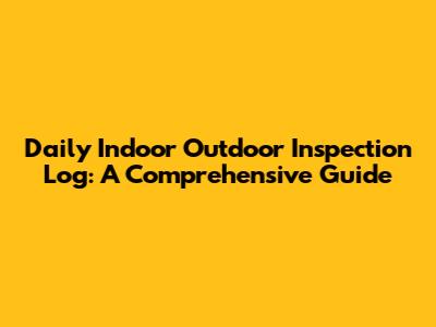 Daily Indoor Outdoor Inspection Log: A Comprehensive Guide