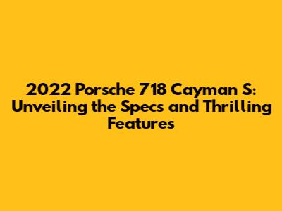 Hey car enthusiasts! Are you ready to dive deep into the heart of a true sports car icon? Today, we're taking a closer look at the 2022 Porsche 718 Cayman S, a vehicle that perfectly blends performance, style, and everyday usability. Buckle up, because we're about to explore the specifications, features, and everything else that makes this car a standout in its class. This article aims to provide you with a comprehensive overview of the 2022 Porsche 718 Cayman S, highlighting its key features, performance metrics, and the overall driving experience. We'll delve into the engine options, interior design, technological advancements, and the unique characteristics that set the 718 Cayman S apart from its competitors. Whether you're a seasoned Porsche aficionado or a newcomer to the brand, this exploration will equip you with valuable insights into this remarkable sports car. Ready to get started?