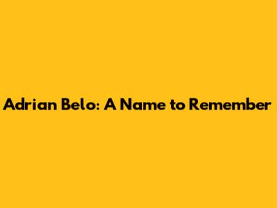 Adrian Belo: A Name To Remember