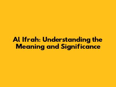 Al Ifrah in Cultural and Religious Contexts