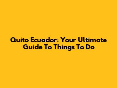 Quito Ecuador: Your Ultimate Guide To Things To Do