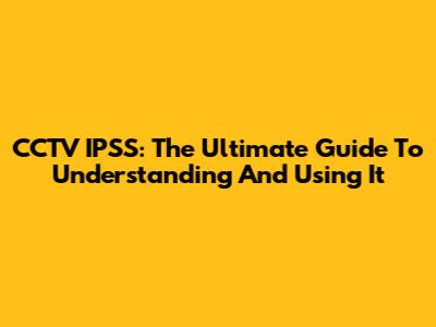 CCTV IPSS: The Ultimate Guide To Understanding And Using It
