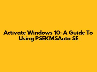 Activate Windows 10: A Guide To Using PSEKMSAuto SE