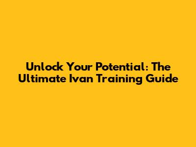Unlock Your Potential: The Ultimate Ivan Training Guide