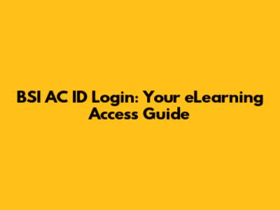 BSI AC ID Login: ELearning Access Guide