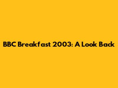 BBC Breakfast 2003: A Look Back