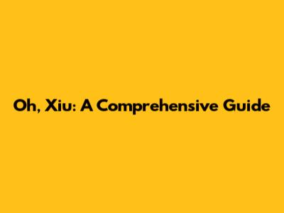 Oh, Xiu: A Comprehensive Guide