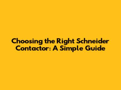Key Factors to Consider When Selecting a Schneider Contactor