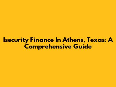 Isecurity Finance In Athens, Texas: A Comprehensive Guide