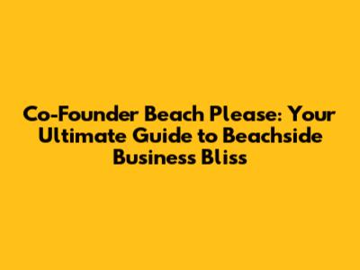 Hey guys! So, you're dreaming of escaping the corporate grind and building a business while soaking up the sun and feeling the sand between your toes? Sounds like a dream, right? Well, that dream is totally achievable! Welcome to the world of the Co-Founder Beach Please lifestyle, where work and play blend seamlessly. This guide is your ultimate companion to navigating the exciting, and sometimes challenging, journey of starting a business by the beach. We're talking about everything from initial planning, finding the right co-founder, building a business model, marketing, and the tools you need to make this all possible.