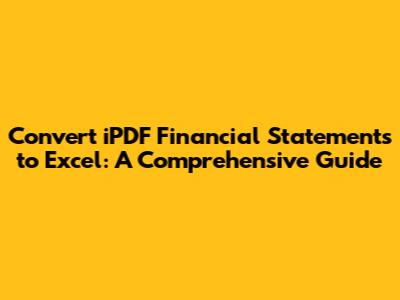 Hey guys! Ever found yourself staring at a bunch of iPDF financial statements, wishing you could wrangle that data into a neat Excel spreadsheet? It's a common headache, but fear not! Converting iPDF financial statements to Excel is totally doable, and I'm going to walk you through the whole process. We'll cover everything from the basics of iPDF files to the best tools and techniques to get your data where you need it. This guide is designed to be super helpful, even if you're not a tech whiz. Let's dive in and make this data conversion thing a breeze!