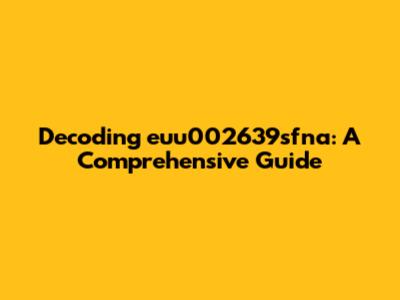 Okay, let's get down to brass tacks and analyze euu002639sfna. Without any context, it's tough to say exactly what it represents, but we can make some educated guesses based on its characteristics. The code consists of lowercase letters and numbers, which is a common format for many alphanumeric identifiers. The presence of the number 002639 suggests that it could be a serial number or part of a larger identification sequence. The letters euu and sfna could be abbreviations or prefixes that indicate the manufacturer, product type, or some other relevant information. To get a clearer picture, we need to consider the context in which this code was found. Where did you encounter euu002639sfna? Was it on a product label, a website, a document, or somewhere else? Knowing the source of the code can provide valuable clues about its meaning. For example, if it was found on a piece of electronic equipment, it might be a serial number or model number. If it was found in a URL, it might be a parameter that identifies a specific page or resource. Once you have a better understanding of the context, you can start researching the code online or consulting with experts who might be familiar with it. Try searching for euu002639sfna on Google or other search engines. You might be surprised at what you find!
