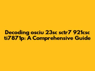 To effectively decode "osciu 23sc sctr7 921csc ti7871p," we first need to dissect it into smaller, manageable components. This string appears to be an alphanumeric code, likely composed of several segments, each with its own meaning. Let’s break it down: