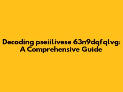 Unraveling the Mystery: What Could pseiilivese 63n9dqfqlvg Be?