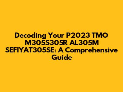 Hey guys! Ever stumble upon a code or series of letters and numbers that seems like a secret language? Well, today, we're diving deep into one: P2023 TMO M305S305R AL305M SEFIYAT305SE. Sounds like something out of a sci-fi movie, right? But fear not! This guide will break down what each part potentially means, helping you understand its significance and purpose. Think of it as a decoder ring for this specific code. We will explore the possible meanings of each section. This article aims to provide a clear and concise understanding, helping you navigate this potentially complex identifier. Let's get started. Keep in mind that without more context, such codes can have several meanings.