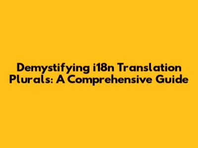 Hey guys! Ever wondered how websites and apps magically display the right word form when the number changes? Like, it correctly says "1 apple" but uses "2 apples"? That's the magic of i18n translation plurals at work! Let's dive deep into this fascinating topic and unlock the secrets of making your applications speak the language of their users fluently. We'll cover everything from the basics to some of the more advanced concepts, so get ready to level up your internationalization game! i18n translation plural plays a crucial role in creating a localized experience that resonates with users globally. When users encounter an application or website that properly uses pluralization, it not only enhances the user experience but also demonstrates a level of attention to detail and respect for the user's language and culture.