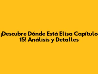 ¡Descubre Dónde Está Elisa Capítulo 15! Análisis Y Detalles