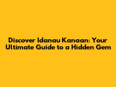 Discover Idanau Kanaan: Your Ultimate Guide