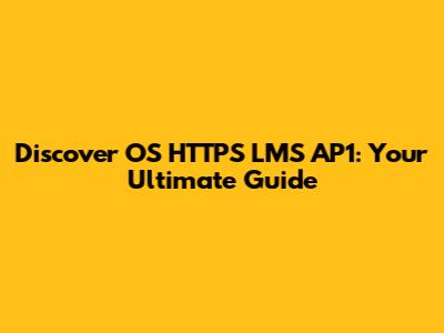 Understanding the Basics: What is OS HTTPS LMS AP1?