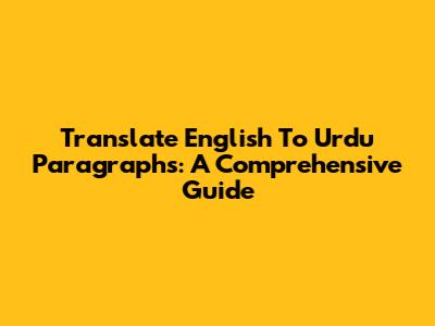 Translate English To Urdu Paragraphs: A Comprehensive Guide