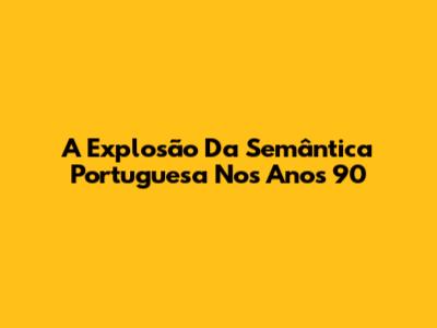 A Explosão Da Semântica Portuguesa Nos Anos 90