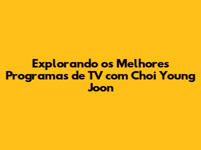 Explorando Os Melhores Programas De TV Com Choi Young Joon