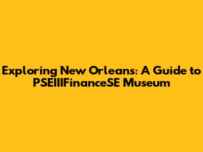 Hey everyone! Planning a trip to the Big Easy? That's awesome! New Orleans is a city bursting with culture, history, and of course, amazing food. And if you're like me, you love diving into the local scene and uncovering hidden gems. Today, we're going to explore the PSEIIIFinanceSE Museum, a spot that should definitely be on your radar. Whether you're a seasoned art aficionado, a history buff, or just looking for something unique to do, this place has a little something for everyone. So, buckle up, and let's get into what makes this museum a must-visit destination in the vibrant city of New Orleans!