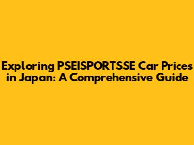 Hey car enthusiasts! Ever wondered about the exciting world of PSEISPORTSSE car prices in Japan? Well, you're in the right place! We're diving deep into the fascinating realm of these vehicles, giving you the lowdown on everything from pricing to what makes them so special. Whether you're a seasoned car collector or just a curious gearhead, this guide has got you covered. So, buckle up, and let's embark on this thrilling ride together!