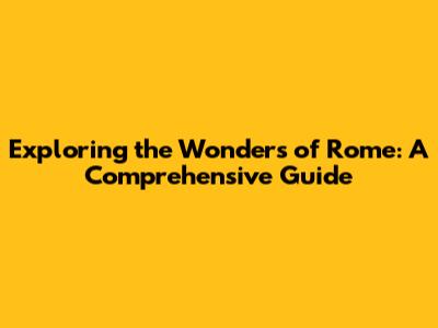 Unveiling Rome's Rich History and Cultural Significance