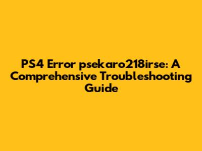 By following these steps diligently, you should be able to resolve the psekaro218irse error on your PS4 and get back to your gaming adventures. Good luck, and happy gaming!