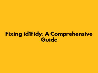 Troubleshooting id1fidy: Your Step-by-Step Guide