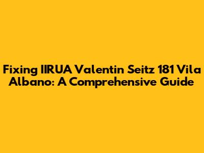 Hey guys! Ever found yourself staring at something that needs a little TLC? Maybe it's a piece of tech, a home appliance, or even something sentimental. Well, today, we're diving deep into the world of fixing something specific: the IIRUA Valentin Seitz, located at 181 Vila Albano. Sounds exciting, right? Don't worry, this isn't just a dry technical manual. We're going to break down everything in a way that's easy to understand, even if you're not a tech whiz. We'll explore what this might be, why it matters, and how you can get it back in tip-top shape. This guide is crafted to be your go-to resource, whether you're a seasoned fixer or just starting out. So, grab your metaphorical toolbox, and let's get started!