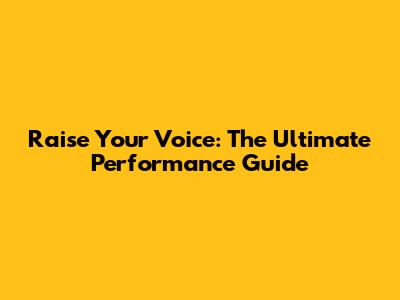 Raise Your Voice: The Ultimate Performance Guide