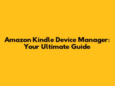 Amazon Kindle Device Manager: Your Ultimate Guide