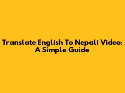 Translate English To Nepali Video: A Simple Guide