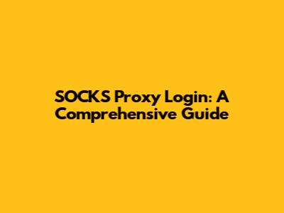 SOCKS Proxy Login: A Comprehensive Guide