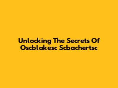 Unlocking The Secrets Of Oscblakesc Scbachertsc