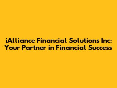 Hey there, financial adventurers! Let's dive into the world of iAlliance Financial Solutions Inc. and see how they can be your trusty sidekick on your journey to financial freedom. This is more than just a company; it's a team of dedicated professionals ready to help you navigate the often-tricky waters of personal finance. Whether you're dreaming of buying your first home, planning for retirement, or just trying to get a better handle on your finances, iAlliance has got your back. They offer a range of services designed to empower you with the knowledge and tools you need to make informed decisions about your money. So, buckle up, because we're about to explore everything iAlliance has to offer, from their core values to the specific solutions they provide. Ready to unlock your financial potential? Let's go!