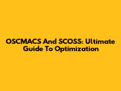 OSCMACS And SCOSS: Ultimate Guide To Optimization