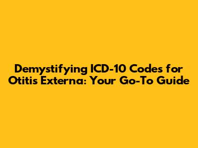 Hey everyone! Let's dive into the nitty-gritty of ICD-10 codes for otitis externa. If you're in the medical billing or coding world, or even just a curious patient trying to understand your medical bills, you know how crucial these codes are. They're basically the universal language for diagnosing conditions, and getting them right is super important for accurate record-keeping, billing, and even research. Otitis externa, often called swimmer's ear, is a common condition affecting the outer ear canal. It can be caused by various factors, including infections (bacterial or fungal), allergies, or even skin conditions. Because it's so common and can have different underlying causes and severities, the ICD-10 coding system provides a specific set of codes to accurately capture the diagnosis. We're going to break down these codes, explain what they mean, and give you the lowdown on how they're used. So, buckle up, guys, because we're about to make understanding ICD-10 oht (which, let's be real, is probably a shorthand for otitis externa) a whole lot easier. We'll cover the most common codes, how to choose the right one, and why precision matters. Understanding the nuances of these codes helps healthcare providers ensure they're getting reimbursed correctly and that patient records are comprehensive. Plus, it helps in tracking the prevalence of different types of ear infections, which can be vital for public health initiatives and research.