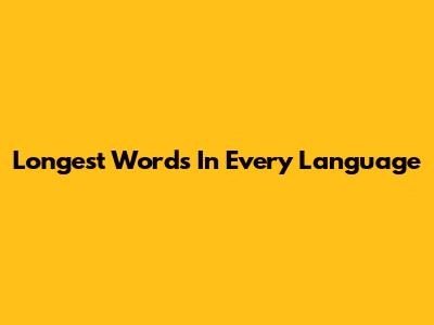 Longest Words In Every Language