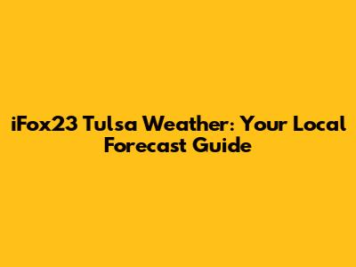 Hey guys! So, you're probably wondering about the iFox23 Tulsa weather, right? Whether you're planning a weekend picnic, need to decide what to wear tomorrow, or just want to stay ahead of any wild storms, getting the right weather forecast is super important. And when it comes to reliable local weather updates for Tulsa and the surrounding areas, iFox23 is a go-to source for many of us. They provide detailed information that helps us navigate our day-to-day lives, from sunny skies to potential severe weather events. Understanding the nuances of your local forecast means you can make informed decisions, ensuring you’re always prepared, no matter what Mother Nature throws our way.