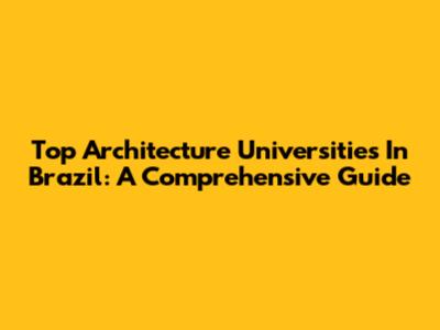 Top Architecture Universities In Brazil: A Comprehensive Guide