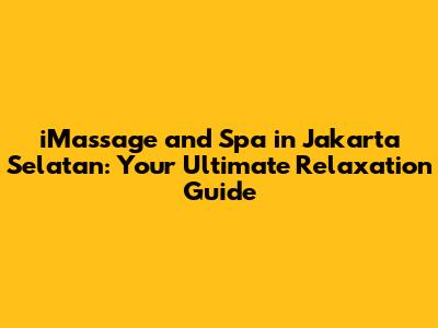 Hey guys! Are you ready to dive into the world of iMassage and Spa in Jakarta Selatan? Jakarta Selatan, or South Jakarta, is a buzzing hub, isn't it? Full of energy, from the bustling streets to the vibrant social scene. But let's be real, sometimes you just need to chill and escape the everyday grind. That's where the amazing world of iMassage and spas comes in. They offer a sanctuary of calm amidst the city's chaos. Whether you're a local or just visiting, this guide will walk you through everything you need to know about finding the perfect spa experience in Jakarta Selatan. We'll explore various massage techniques, the best spas, and even some tips on how to get the most out of your visit. So, grab a comfy seat, and let's get into it!