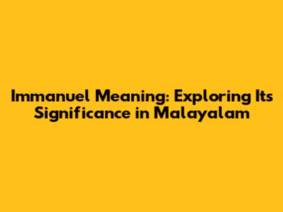 Hey guys! Ever wondered about the depth and significance behind the name Immanuel, especially when we look at its meaning and cultural relevance in Malayalam? Well, let's dive right into it! Understanding the name Immanuel goes beyond just knowing its literal translation; it involves exploring its theological roots, cultural context, and the emotional resonance it carries for those who bear or cherish this name. So, buckle up as we embark on this enlightening journey to uncover everything about Immanuel in the beautiful language of Malayalam.