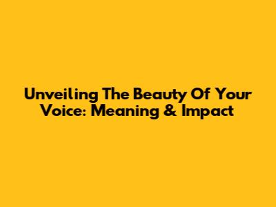 Unveiling The Beauty Of Your Voice: Meaning & Impact