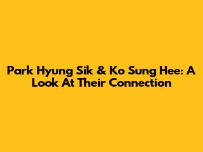 Park Hyung Sik & Ko Sung Hee: A Look At Their Connection