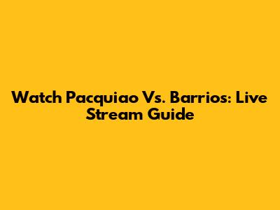 Watch Pacquiao Vs. Barrios: Live Stream Guide