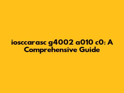 At its core, iosccarasc g4002 a010 c0 is likely a specific identifier, possibly a part number, a serial number, or a unique code assigned to a particular product, component, or process. To truly understand its significance, we need to dissect it piece by piece. Let's break it down: